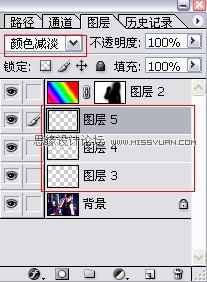 2、利用刚才保存的笔刷,在图层2下面新建图层几个图层,模式为颜色减淡,然后就好像白天光斑的制作方法分别在每个图层画出不同大小的光斑进行不同程度的模糊。