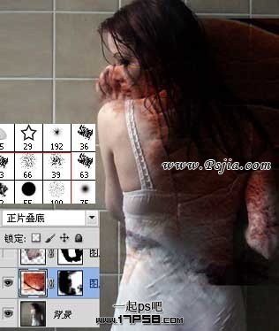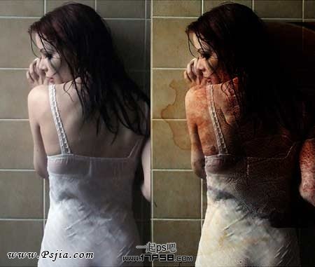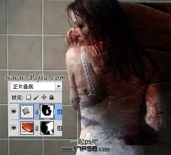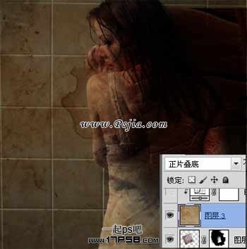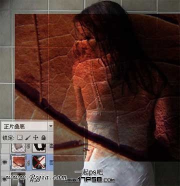 2、将纹理拖入人物图片中,图层模式正片叠底。