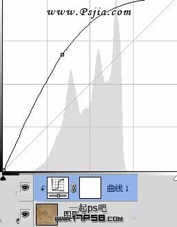 9、画面很暗,加个曲线调整层加亮画面,图层创建剪贴蒙版,使曲线效果只作用于底部的纹理(图层3)