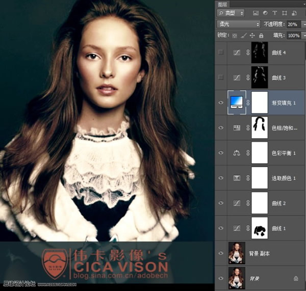 9、最后创建二个曲线调节层,一亮一暗,对画面影调稍加控制,最终效果如下图: