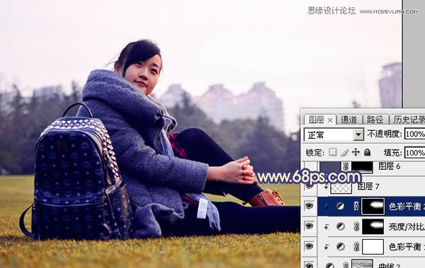5、创建色彩平衡调整图层,对阴影,高光进行调整,参数设置如图13,14,确定后按Ctrl + Alt + G 创建剪切蒙版,效果如图15。这一步主要给图片暗部增加蓝色。