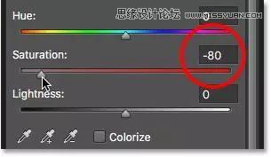 不要太极端,当您拖动饱和度滑块并留下足够的黄色以保持牙齿自然时,可以观察图像的变化。对于大多数情况,大约-80的饱和度值很好: