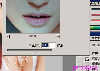 接着执行滤镜-锐化-USM锐化,分别把数量、半径和阈值设为50%、10像素和50色阶。